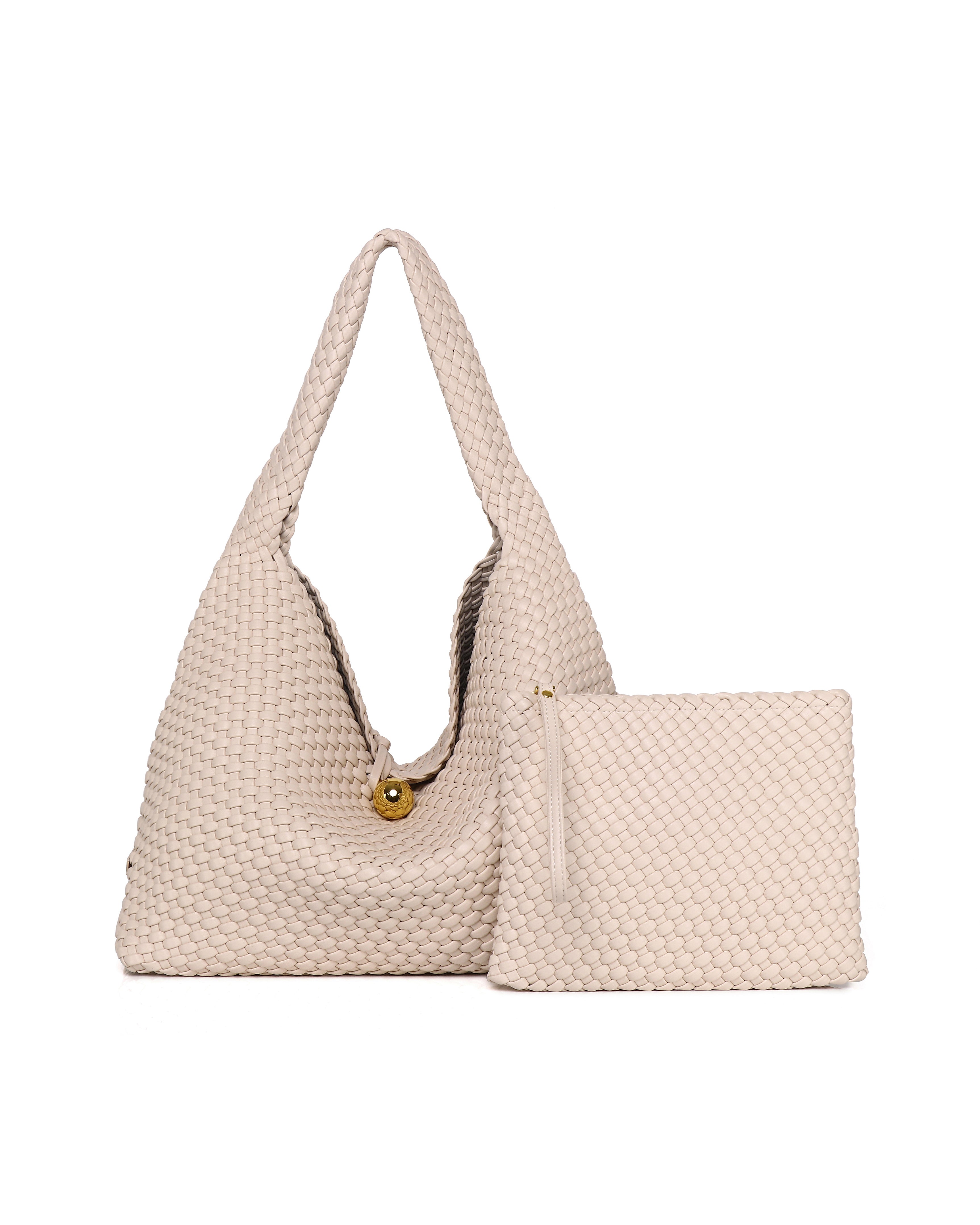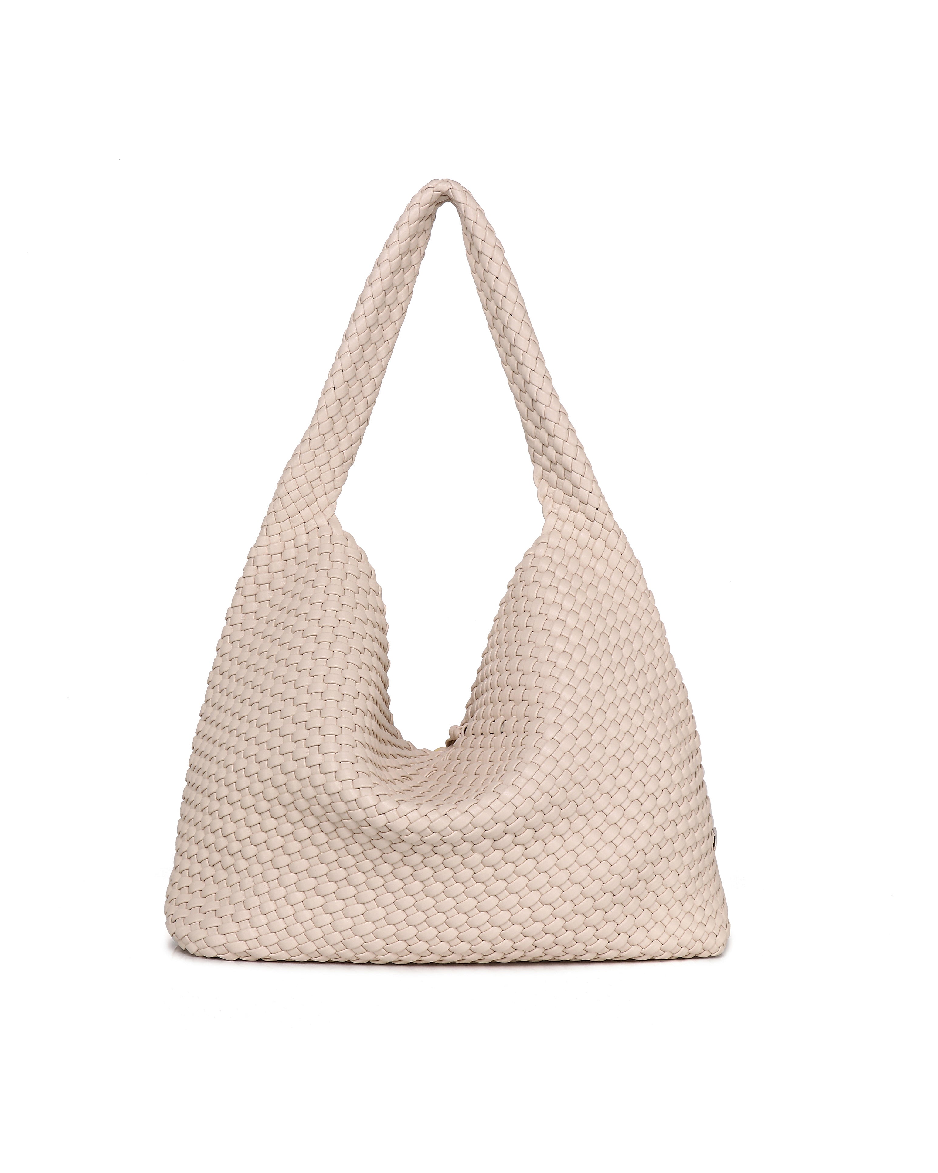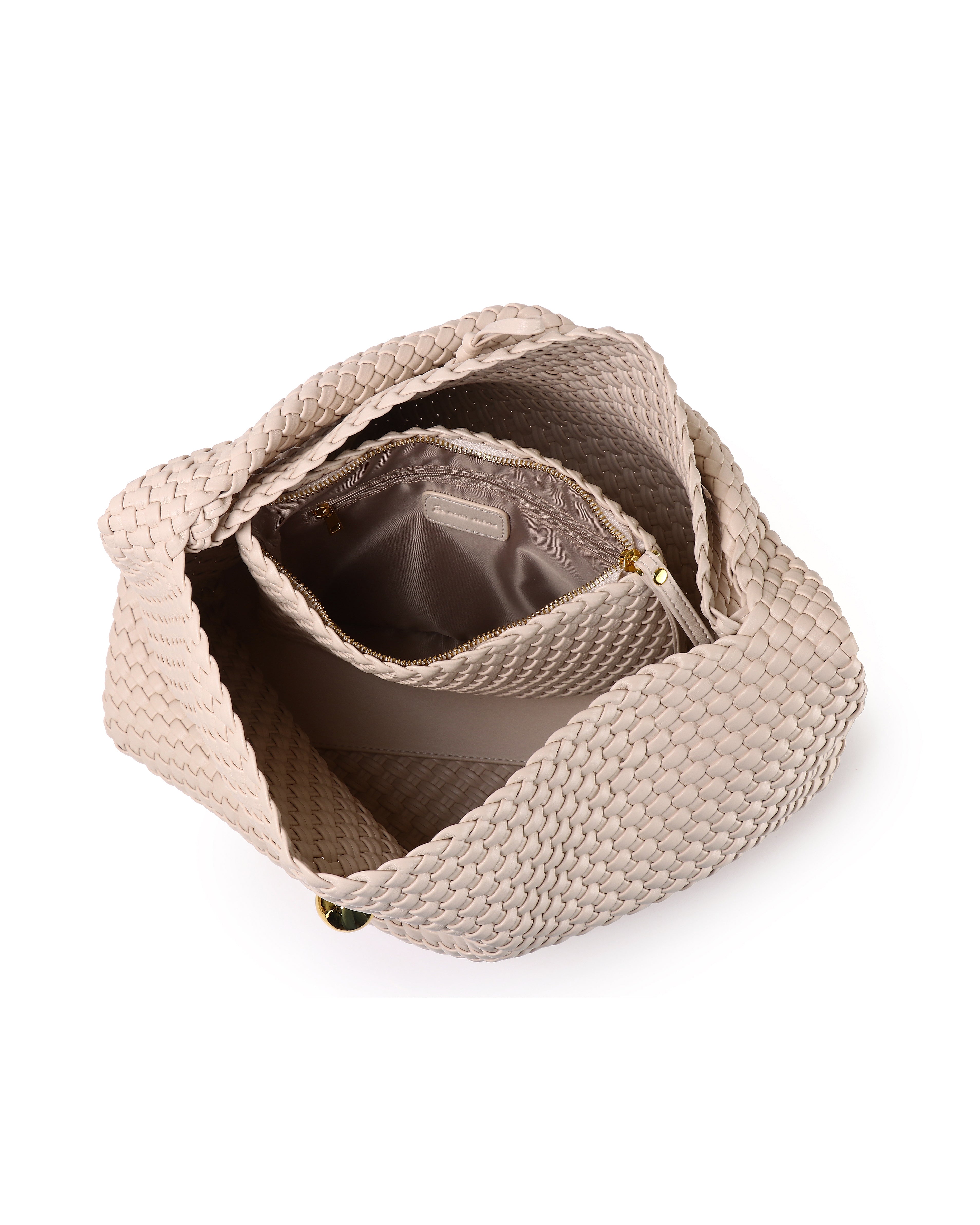 Crafted with a woven texture and finished with a hoop-through button closure, Charlie also includes a matching woven pouch for added organisation. A structured base keeps its shape, no matter how much you carry.