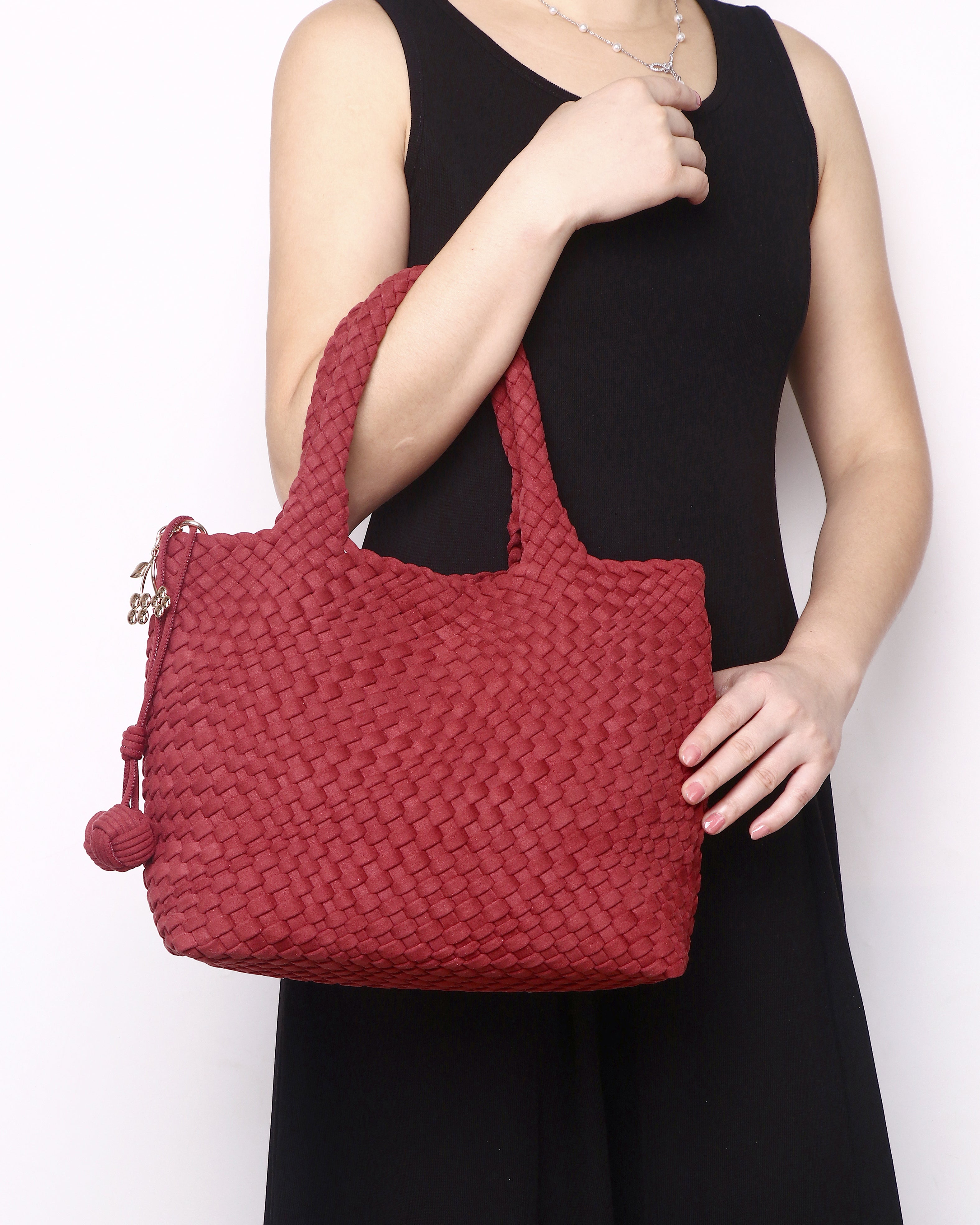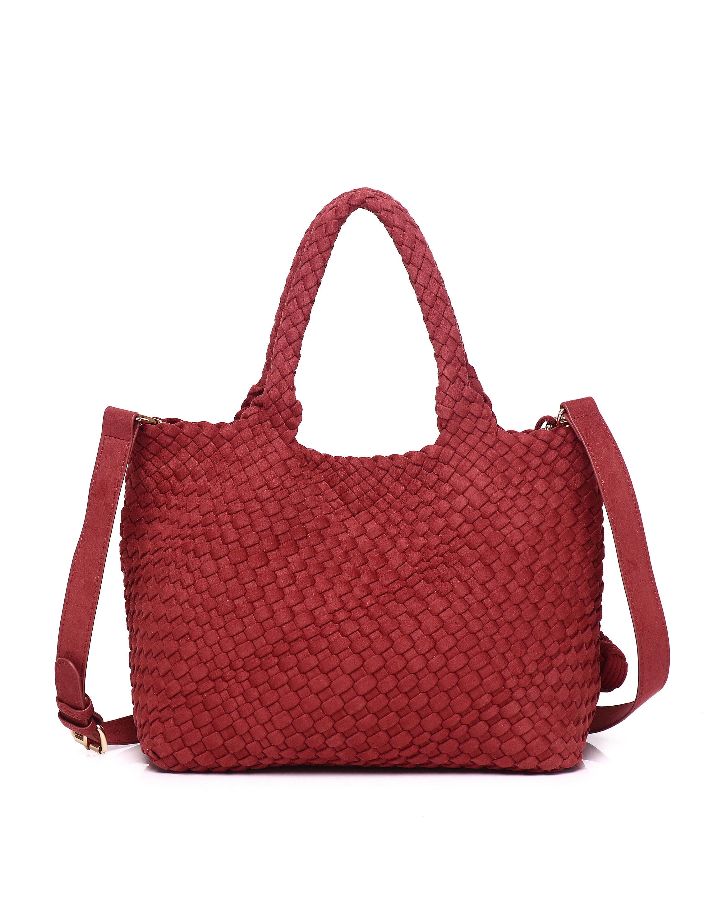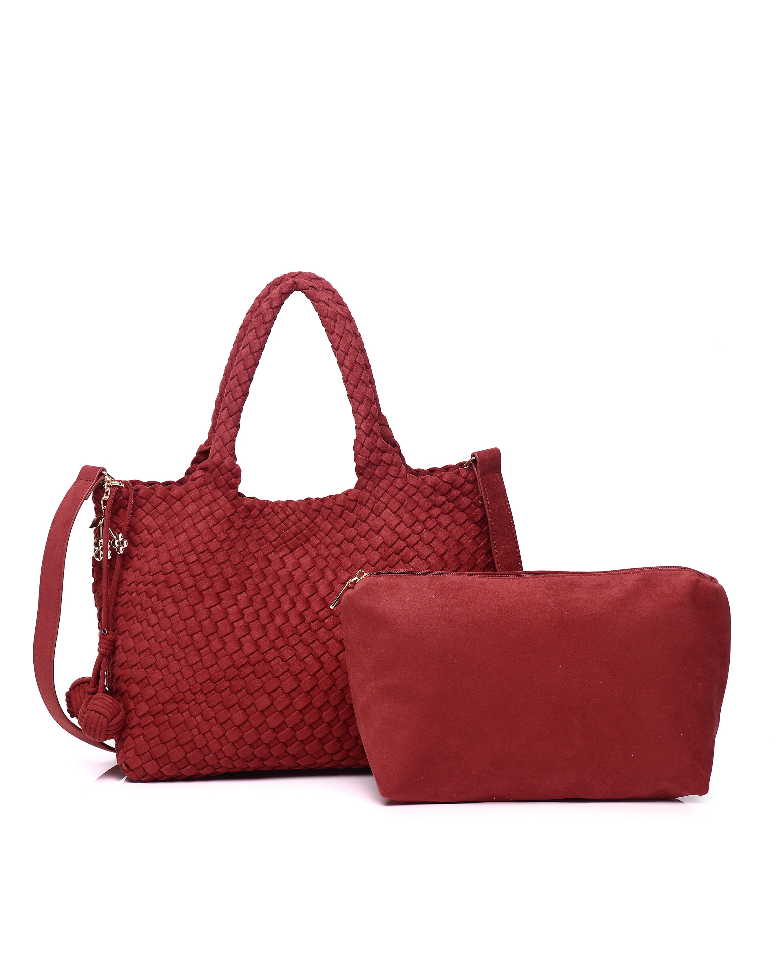 Expertly crafted in soft suede material, this spacious tote includes a matching pouch for effortless organization.