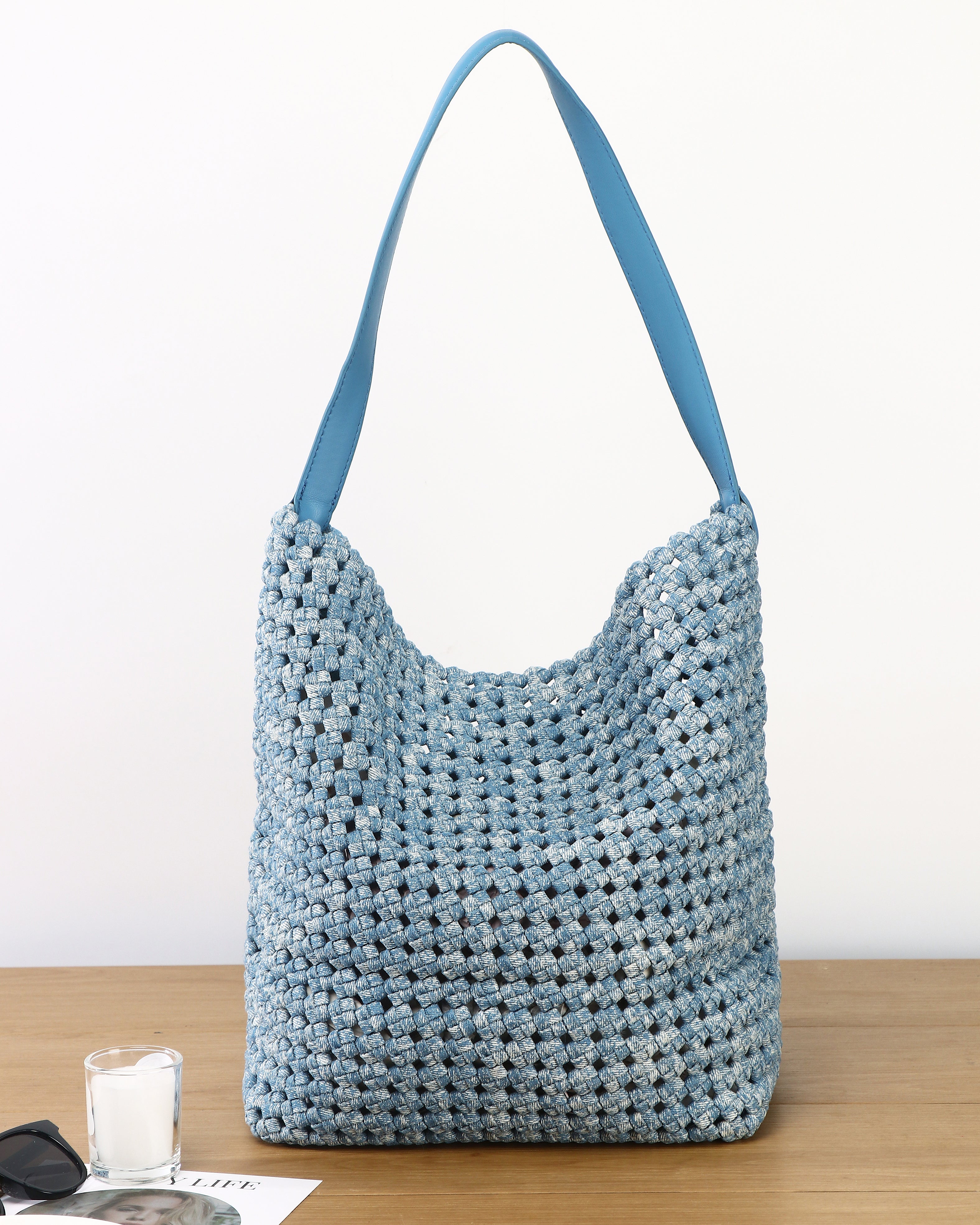 Woven entirely by hand using knotted nylon fabric, Lumi brings a unique twist to the everyday carry. Its hobo-bucket silhouette is structured and striking, perfect for slinging over your shoulder and heading out in style.
